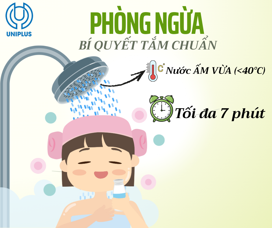 Sản phẩm dịu nhẹ: Sử dụng sữa tắm và sữa rửa mặt có độ pH trung tính, không chứa xà phòng (soap-free) hoặc hương liệu mạnh.