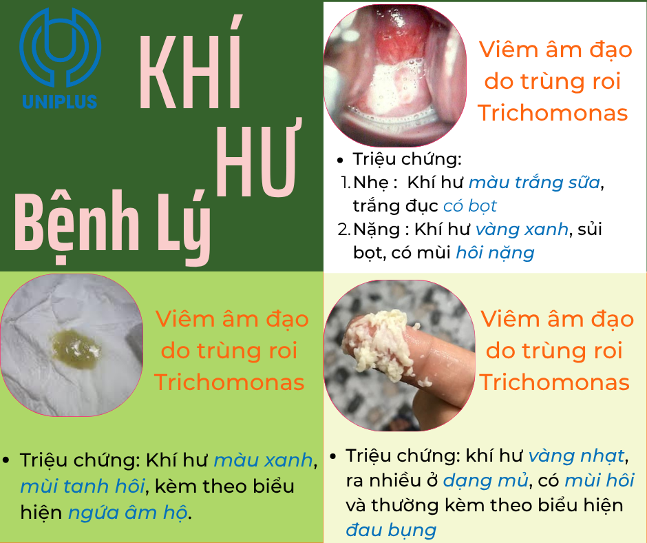 – Triệu chứng: Khí hư màu xanh, mùi tanh hôi, kèm theo biểu hiện ngứa âm hộ.