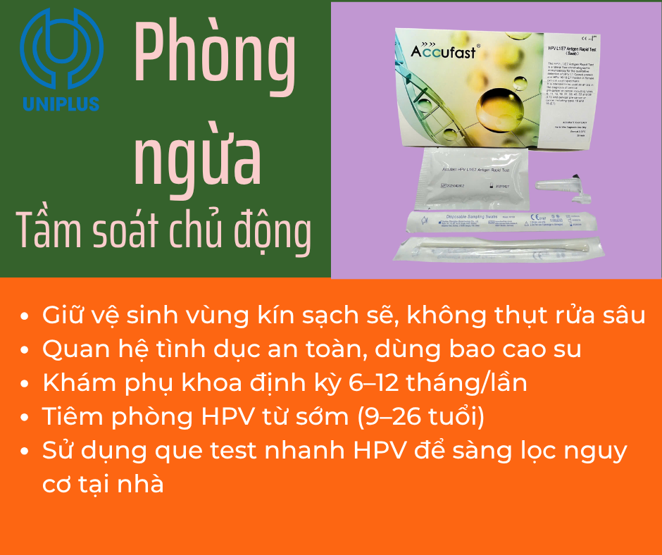 Uniplus cung cấp que test nhanh phát hiện kháng nguyên HPV L1/E7 – Accufast giúp phụ nữ chủ động tầm soát các chủng HPV nguy cơ cao – nguyên nhân hàng đầu gây ung thư cổ tử cung: