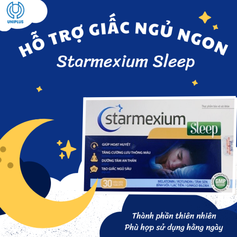 Thực phẩm bảo vệ sức khỏe Starmexium Sleep hỗ trợ hoạt huyết, tăng cường lưu thông máu, dưỡng tâm, an thần giúp cải thiện tình trạng mất ngủ