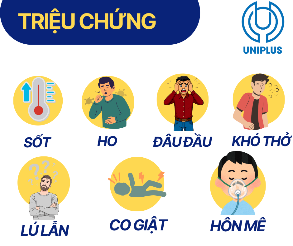 Triệu chứng khởi phát: Sốt cao đột ngột, đau đầu, đau cơ, nôn mửa và viêm đường hô hấp trên.