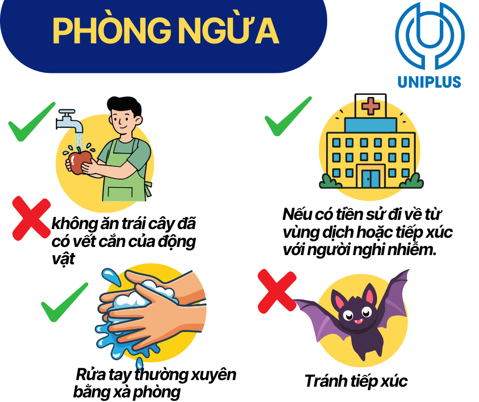 Kiểm soát nguồn lây: Hạn chế tiếp xúc với dơi và khu vực dơi cư trú. Tại các trang trại lợn, cần thiết lập hàng rào sinh học để ngăn cách dơi ăn quả.